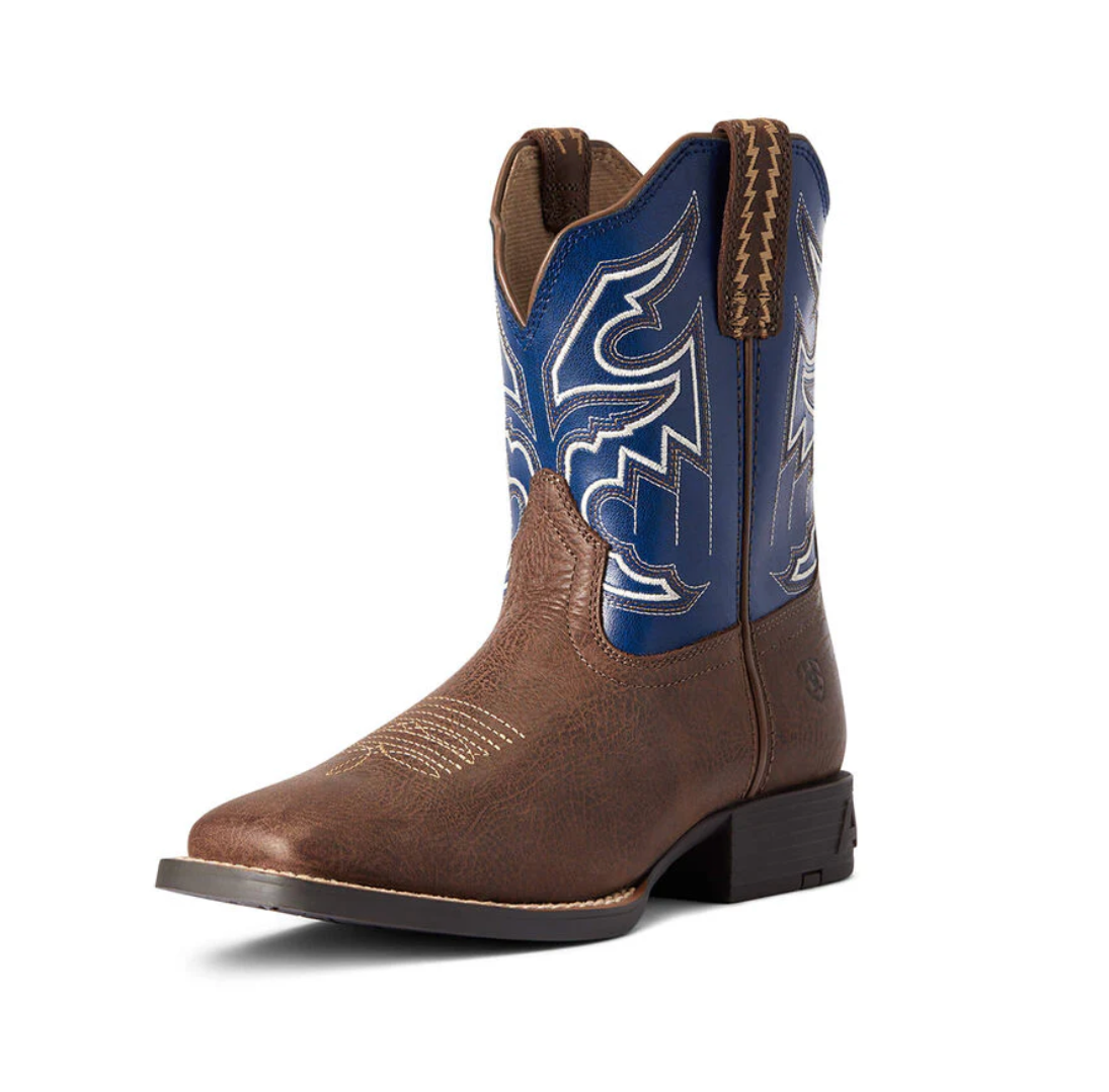 Ariat kids' Western boots are made with the finest materials and are built to last through any activity—from horseback riding to just horsin' around in the backyard. This pair is quality crafted from premium full-grain leather that gets better looking with age while a cushioned foot bed, removable insoles and a rugged outsole ensure long-lasting wear.
